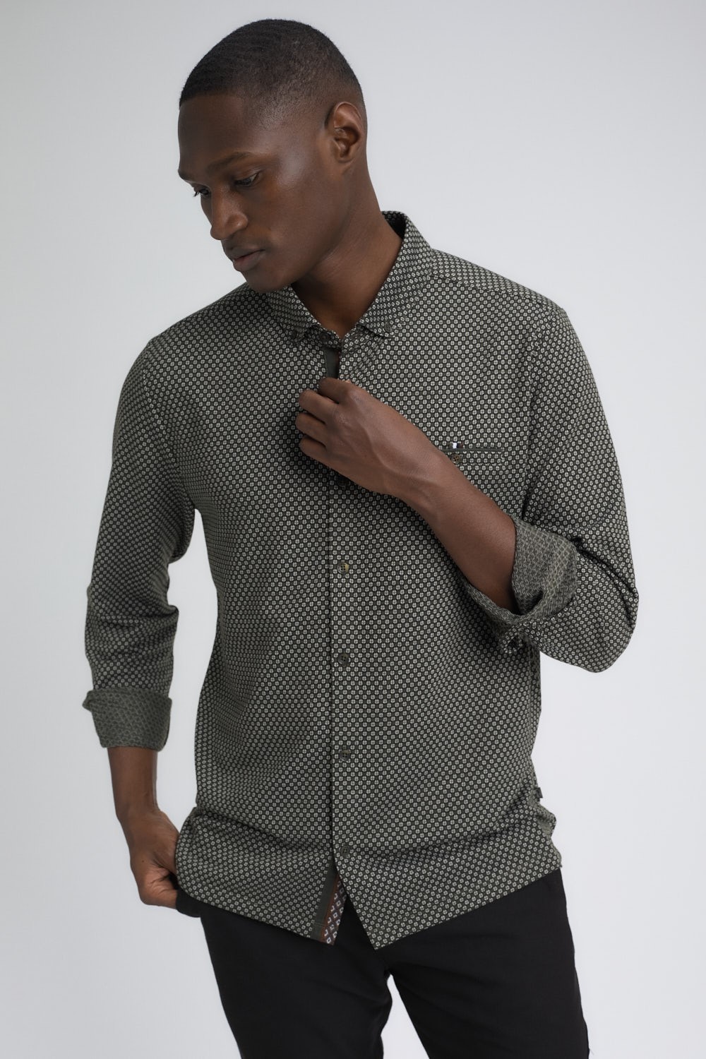 Camisa de jersey Jacquard color Kaki de manga larga